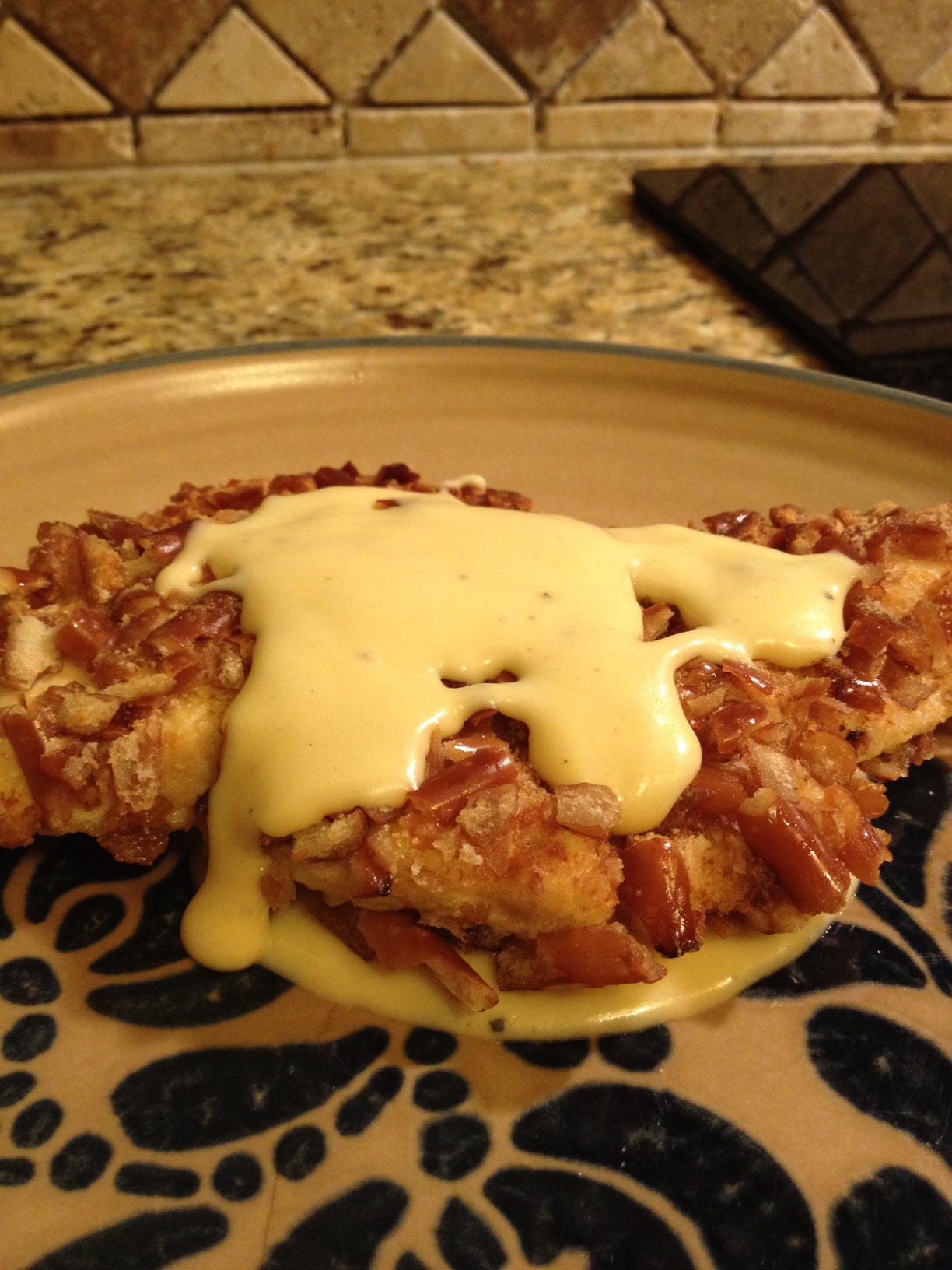 Pretzel Chicken With Mustard Cheddar Sauce
